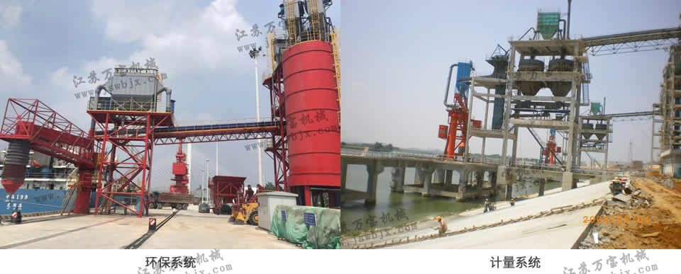 計量系統(tǒng):有2個計量倉,裝料、稱重、放料、稱重循環(huán)進(jìn)行,每個計量倉有收塵器,通過調(diào)節(jié)流量閥和開關(guān)閥由斜槽到裝船機裝船。