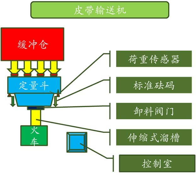該快速定量裝車系統(tǒng)采用快速計量系統(tǒng)和移動裝車系統(tǒng)相結(jié)合,計量系統(tǒng)采用靜態(tài)計量,精度大于5‰。該系統(tǒng)主要由輸送系統(tǒng)、計量裝車系統(tǒng)(布料機(jī)構(gòu)、緩沖料倉、漏斗型定量倉、稱重系統(tǒng)、鄂式配料閘門、平板閘門)、軌道移動式裝車裝置(平倉系統(tǒng))、控制系統(tǒng)、除塵系統(tǒng)等。 |